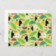 Colourful summer seamless pattern with funny toucans, juicy watermelons, pineapples, tropical flowers and delicious young coconuts.