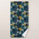 Toucans and tropical flora, blue , yellow , orange bath towel set