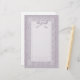 Sweet stationery features pretty damask background with lace edged overlay and pretty bow accent in pastel lavender tones.