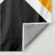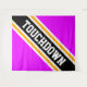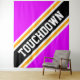 This sporty, football design features bold athletic TOUCHDOWN text inside a highlighted wide diagonal black, white, and golden yellow racing stripes against bright vivid pink wide outer stripes. The text in this design can be personalised.