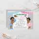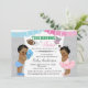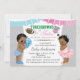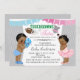 Touchdowns or tutus gender reveal baby shower invitations with adorable ethnic African American baby boy and girl on a pretty grey chevron background with pink and blue banners. This cute touchdowns or tutus baby shower invitation is easily customised for your event by simply adding your details.