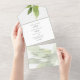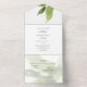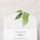 Watercolor green leaves Wedding Invitation. Bride Parents. White back. Modern. Swash. All in One. Initials on the outside of the folded invitation. Green. Touches of Spring Collection