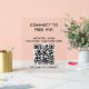 A modern business tabletop sign design allowing your customers to connect to the free WiFi. A minimalist personalised scan and connect business sign. Customise the text and make it your own..