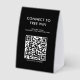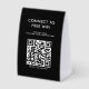 A modern business paper table tent sign design allowing your customers to connect to the free WiFi. A minimalist personalized scan and connect business sign. Customize the text and make it your own..
