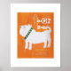 Mr. Tough Guy bulldog print on orange collage background. Original collage artwork made from recycled magazines and junk mail because trees are for monkeys and squirrels. Visit www.miximals.com to see more collage artwork.