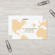 Nice contact card to promote yourself with elegance... front side: oversized salmon colour map of the world and a faux gold aeroplane, name and profession (tour guide, travel agent...), and custom slogan (here we go again); back: lines of text (business name, phone, email and address) on white and clear background with Company logo.