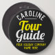 Tour Guide Badge for a travel company. Add the name of the Tour Guide to create a personal holiday company badge for your travel agent or travel agency employees to wear when guiding tourists. Great tourism button badge. Holiday rep badge.