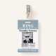 Personalise ring security agent badge with thank you note and photo area for your ring bearer. Custom colours