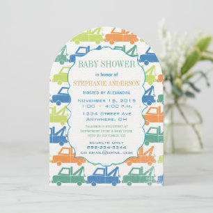 Modern Baby Boy Tow Truck Shower Arch Shape Invitation
