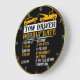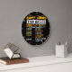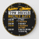 This humourous wall clock outlines the varying hourly rates for a tow truck driver based on the customer's behaviour. Against a black background with a golden-yellow rim, it features a yellow car being towed by a yellow tow truck. The chart humorously lists increasing rates for different scenarios: "$150/HR MINIMUM", "$175/HR IF YOU WATCH", "$200/HR IF YOU HELP", "$250/HR IF YOU WORKED ON IT FIRST", and "$350/HR IF YOU TELL ME HOW TO DO MY JOB." It's a witty piece perfect for a tow truck driver's garage or office.