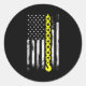 Tow Truck Driver thin yellow line USA flag gift Classic Round Sticker