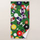 In the 19th century a poolroom was a horse race betting parlour. Pool tables were installed so the bettors could pass time between horse races. Billards, or pool, is the descendant of a game similar to croquet that was played in 15th-century Europe. Though we don't know for sure, it is strongly suspected that billiards came to America with Dutch and English settlers. By the 1700's, skilled cabinet makers were crafting beautiful tables, though the equipment was, otherwise, quite primitive. Fifteen-ball pool came on the scene in the late 1800's and grew in popularity through the 1940's. Billiards was revived in 1961 with the release of the movie THE HUSTLER. It enjoyed another surge in the mid 1980's with the release of the movie sequel, COLOR OF MONEY. Since that time, there has been an evolution of the environs in which we find pool tables -- they're in restaurants and night clubs and sports bars, allowing pool to find a modern audience and new generations of enthusiasts. This marvellous design is layers of billiard balls in varying sizes for greater depth. They are scattered all over a "green felt" backdrop. This fabulous towel set is an excellent choice for the "man cave" or for Father's Day .