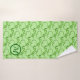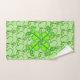 Ivy leaves in bright green on pale green background. Four solid individual leaves have tips meeting at centre, and appears on wash cloth and hand towel. Dark green circle with pale green background in centre with initial, shows on washcloth and towel . Outlines of single leaf is replicated to intertwine as a background on towel and hand towel. Personalise by changing the initial in centre of circle, same colour as circle outline.