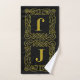 A Celtic-knotted dragon frames the letter "J" in this gorgeous towel set. The frame and letter are in a coordinating gold colour and are computer-enhanced for a slightly embossed look. Though you may change it to suit your own aesthetic, the selected background is a striking midnight black. An excellent choice for newlyweds now sharing the same last initial.