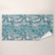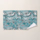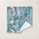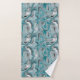 Towel with a turquoise grey abstract pattern.