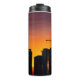 Tower cranes silhouetting beautiful sunset thermal tumbler