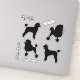 Standard Poodle Stickers and Toy Poodle Stickers. These durable Poodle silhouette decals are waterproof and scratch resistant. Poodles with fancy lion cut and Dutch haircut. Stick these black Toy and Standard Poodle silhouettes vinyl stickers to your laptop, phone, notebook, water bottle, helmet, skateboard, or even your car. Visit Jenn’s Doodle World for even more dog breed vinyl decals and Poodle lover’s gifts.