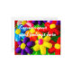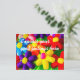 Bunch of inflatable toy balloons shaped as flowers of different colours. Merry holidays! Be happy! Prints and gifts for anyone for fun and good mood. Postcard. You can change or delete the template text.