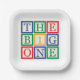 These party plates were created after a burst of nostalgia for those chunky toy blocks that toddlers love stacking… and knocking down. Their bold colors and playful vibe make them a perfect match for a cheerful first birthday party with plenty of giggles and cake crumbs.