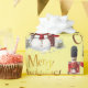 Toy British soldier in a bearskin hat with a cheery snowman and a Merry Christmas greeting in gold text