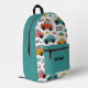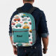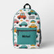 This vibrant backpack features an all-over print of cute, toy-style cars racing across a clean white background. The fresh mint green, cheerful orange, and pops of pink create a gender-neutral and stylish look that kids will adore. The customizable name "Michael" on the front pocket adds a personal touch, perfectly matching the black hardware.