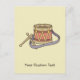 Toy drum icon with strap and drumsticks in vintage colour palette. Custom text. Seamless pattern at back side.