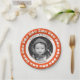 Custom colour scheme birthday plates with white trains border. Your child's photo in the centre. The sample plate is in orange and white with grey text "happy birthday" and child's name (both are editable). Edit your photo in an editing software and crop into a circle with a transparent background, then upload as a pdf. Or you can crop your photo as a square but the edges will show over the background colour. The other option is to completely enlarge your photo so that it goes off the edges of the plate. The text in the white frame and train border will still show up over a darker photo.