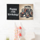 This is a great birthday banner for the farmer and lover of farm equipment. Whether the birthday boy or girl is turning eight or forty, the age can be personalised. The design features a tractor on a black diamond plate background. A rugged birthday banner.