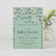 Cute tractor driver or farm boy baby shower invitation cards! This design is absolutely adorable. It features cute little tractors in a seamless pattern on a teil green background with an arch where the party details are displayed. The slogan says, "Vroom, vroom! ...a little tractor driver is on the way." This is the perfect baby shower card for tractor lovers or farmers!