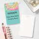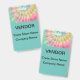 Trade show badges in an artful design with name space template for three lines of text including Vendor, Trade Show Name, and company name in an artsy colorful design displayed on both sides.