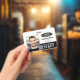 Easily upload your company logo, staff photo and QR Code. Great for all trades. Trade Staff Photo ID QR Code Black White Badge.