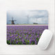 Mousepad with a landscape with a traditional windmill and multiple modern windmills to generate green energy behind a field with purple hyacinth flower in the Bulb Region in Holland.