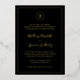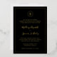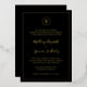 Simple black and gold foil Wedding Invitation with your monogram in a circle at the top and your wedding details surrounded by a thin border. Your names are in an elegant handwritten script font. All design elements on the front are printed in real foil. The classic, traditional layout makes this invitation great for a formal wedding.