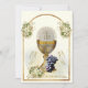 Celebrating the Sacrament of First Holy Communion is a wondrous occasion. This traditional Catholic custom-designed vintage First Holy Communion Invitation with a gold chalice and the Holy Eucharist with white and gold floral accents is sure to express the beauty and solemnity of this special day. All text and fonts can be easily modified.