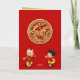 Festive traditional Chinese greeting with firecrackers, Lucky knots and auspicious clouds + golden horse paper-cut + two cute children to wish Happy New Year. Design on vertical greeting card. Available in vertical holiday postcard. Matching red envelope for kids, square flat card, sticker and more soon... Perfect for Chinese New Year of the Horse 2026.