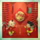 Festive traditional Chinese greeting with firecrackers, Lucky knots and auspicious clouds + golden two young Tigers paper-cut into an opened circle (model n°03) + two cute children to wish Happy New Year. Design on square window cling - Size: 24" x 24", Style: Partial Transparent Design. Matching standard greeting card and red envelope. Perfect for Chinese New Year of the Tiger 2022. ----- "The Tiger (寅) is one of the 12-year cycle of animals which appear in the Chinese zodiac related to the Chinese calendar. The Year of the Tiger is associated with the Earthly Branch symbol 寅. (...) People born within these date ranges can be said to have been born in the "Year of the Tiger", while also bearing the following elemental sign: