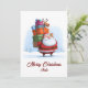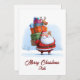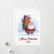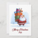 Make this Christmas merry and bright with a funny Santa Claus Christmas card that blends traditional charm and modern design. This adorable non-photo illustration shows Santa Claus cheerfully carrying a tower of colourful presents, with a tiny reindeer balancing happily on top — a scene that’s both hilarious and heart-warming.