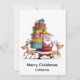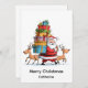 Bring a smile to the season with this funny Santa Claus Christmas card, featuring a cute illustration of Santa carrying a huge stack of colourful presents with two cheerful reindeer trotting beside him. This non-photo design blends modern simplicity with classic Christmas charm, making it perfect for those who love trendy yet traditional holiday cards.