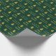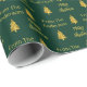 This pattern combines faux (not foil) gold Christmas trees with an elegant gold script that says Merry Christmas. There's also non-script text for the giver's name (Shown: From The Andersons). All text can be edited or deleted. The wrapping paper is dark green.