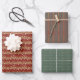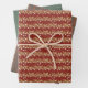 Holiday wrapping paper, flat sheet set of 3. Featuring winter holiday motifs in traditional colors.
