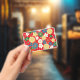 Business cards featuring brightly colored traditional Japanese patterns.