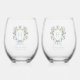 Traditional Leaf Crest w/ Bow | Monogram Wedding Stemless Wine Glass