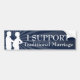 I support traditional marriage bumper sticker decal. Show your support for the Christian and Conservative ideal of traditional marriage between one male husband and one female wife. Dark blue background with white lettering, and silhouette shapes of a man and pregnant woman embracing in matrimony.