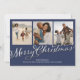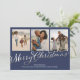 This design features a Merry Christmas traditional elegant custom card, an elegant multi-photo template, with zchristmas Xmas navy blue plaid, a personalised three photo grid collage, with elegant typography calligraphy script, a simple modern silver-white gradient, rustic classic digital photo card, with red navy blue white colours, merry Xmas greetings, a holiday photo Christmas cards