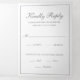 Traditional and classy all in one wedding invitation template with rsvp card and enclosure card attached, making this invitation suite convenient and budget friendly. The wedding invitation has your two initial monogram and your names in an elegant calligraphy inside of a thin border over a grey background along with your favourite photo on the back. The RSVP postcard has your mailing address on the back and your guests simply cut off and mail back to you. NOTE: First class postage is required for the RSVP postcard. Postcard stamps will not be enough postage due to the size. This classic invitation is perfect for a formal wedding.