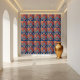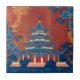 Marrying classic elegance with vibrant colour, this Chinoiserie-style tile showcases a beautiful multi-tiered Asian pagoda, set against rich red tones with floral blue embellishments. Whether used in modern decor or vintage spaces, it brings a refined global flair to any setting.