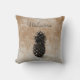 This stylish and elegant throw pillow features the Pineapple which is a traditional symbol of Welcome, warmth, affection and hospitality. This is a beautiful tan and grey pillow that will be complimentary in any home decor. These pillows will be just as welcoming indoors or outdoors, just choose from the multiple styles for the pillow to fit your need. One side features a single pewter tone pineapple and the reverse side smaller pineapples within 4 panels. Each side says Welcome, but either or both can be personalised with a Family Name, Name or your own sentiment or text. These pillows have a gracious appeal that would make heartfelt housewarming gifts. Also check out additional Traditional Pineapple Hospitality themed items in our Pineapple Traditional Symbol of Welcome Collection.
