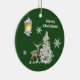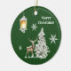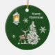 Traditional Rustic Merry Christmas Ceramic Ornament. The green background colour can be modified.