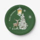 Traditional Rustic Merry Christmas Paper Plates. The green background colour can be modified.