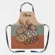 This personalized apron features a beautifully hand-drawn assortment of fresh bakery staples, including crisp baguettes, scored sourdough boules, and a traditional braided loaf, all accented by a golden stalk of wheat set against a warm, tri-tone background of earthy tan, sage green, and terracotta red.